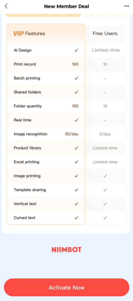 The official Niimbot app unfortunately feels like a typical “China app” of the sort sometimes seen with robot vacuums: it constantly tries to upsell you and feels cluttered with prompts for a VIP subscription (costing approx. €7/month).